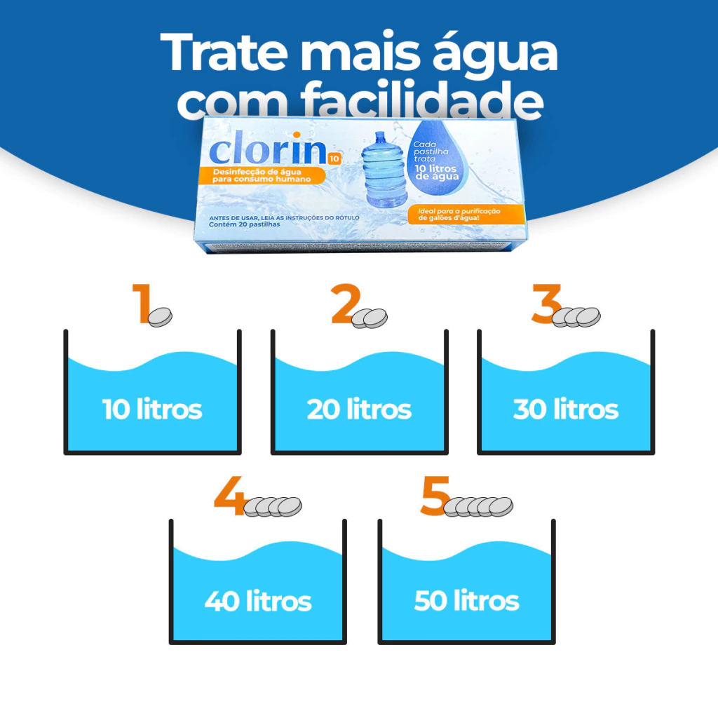 Purificador de Água com 20 Pastilhas - Clorin 10